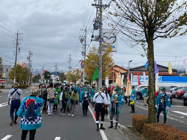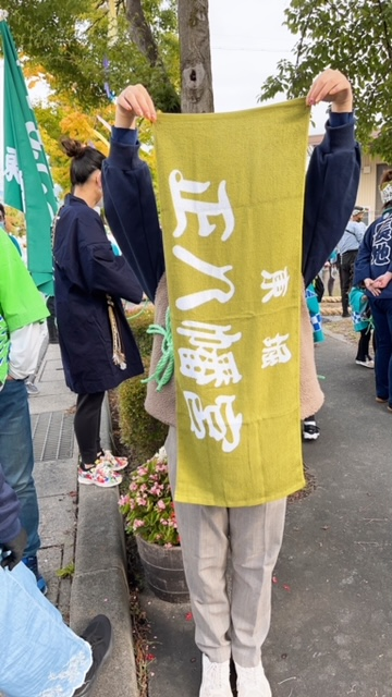 ↓途中、‘‘娘たち‘‘が交代でお手伝い! 柱を先導する旗持ちは女子の方が華がありますから♪