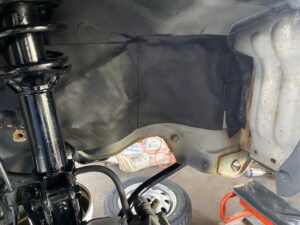 フロントの左右タイヤハウス内(タイヤホイールの奥側フレーム)に