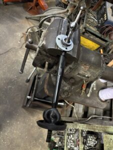↓ミッション装着!! クラッチの調整後にリフト上で実際にギヤシフトしてタイヤ回しテストします!!