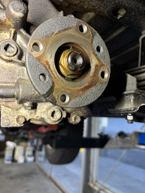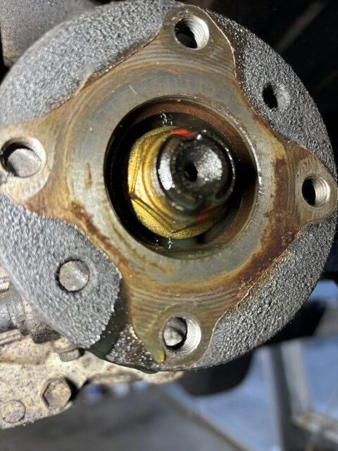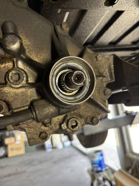 ↓オイルお漏らししてますね(-_-;) こちらはトランスファーギヤのアウトプット側