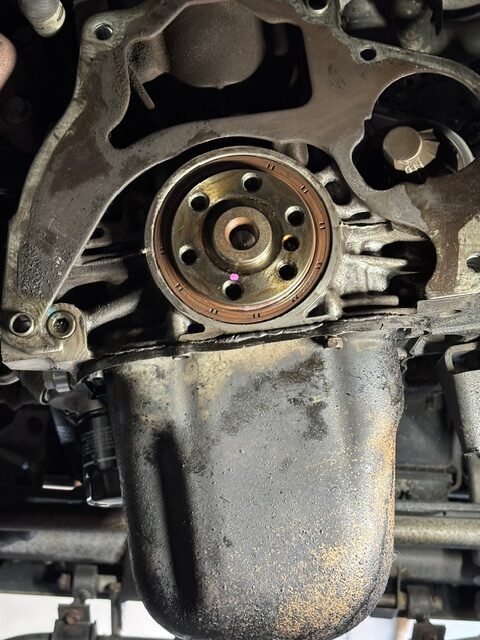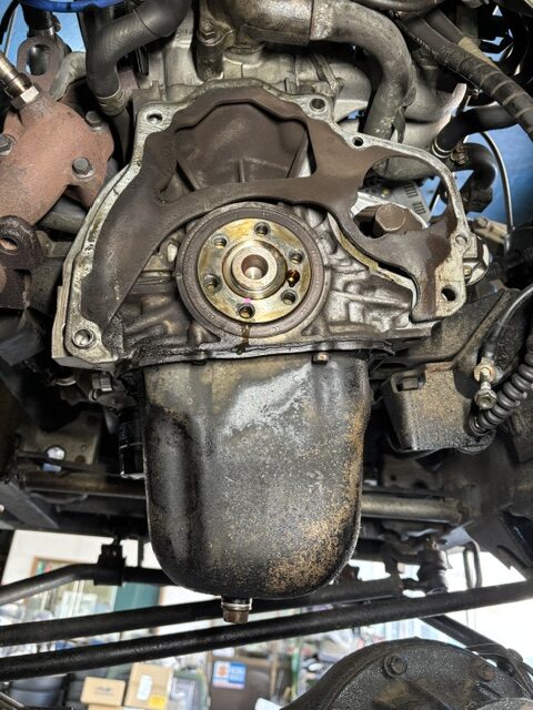 ↓今度はクランクシャフトのオイルシール(ミッション側)からお漏らしですね~